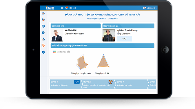 • "Trong quá trình trải nghiệm thực tế vận hành quản lý, đánh giá KPI trên phần mềm, iHCM khá thân thiện khi sử dụng, các tính năng đáp ứng nhu cầu thực tế người dùng, đặc biệt có thể sử dụng trên các thiết bị di động. Qua phần mềm, cấp lãnh đạo có thể nắm bắt kịp thời tất cả các chỉ tiêu, kết quả trong quá trình thực hiện mục tiêu của công ty mọi lúc, mọi nơi..."